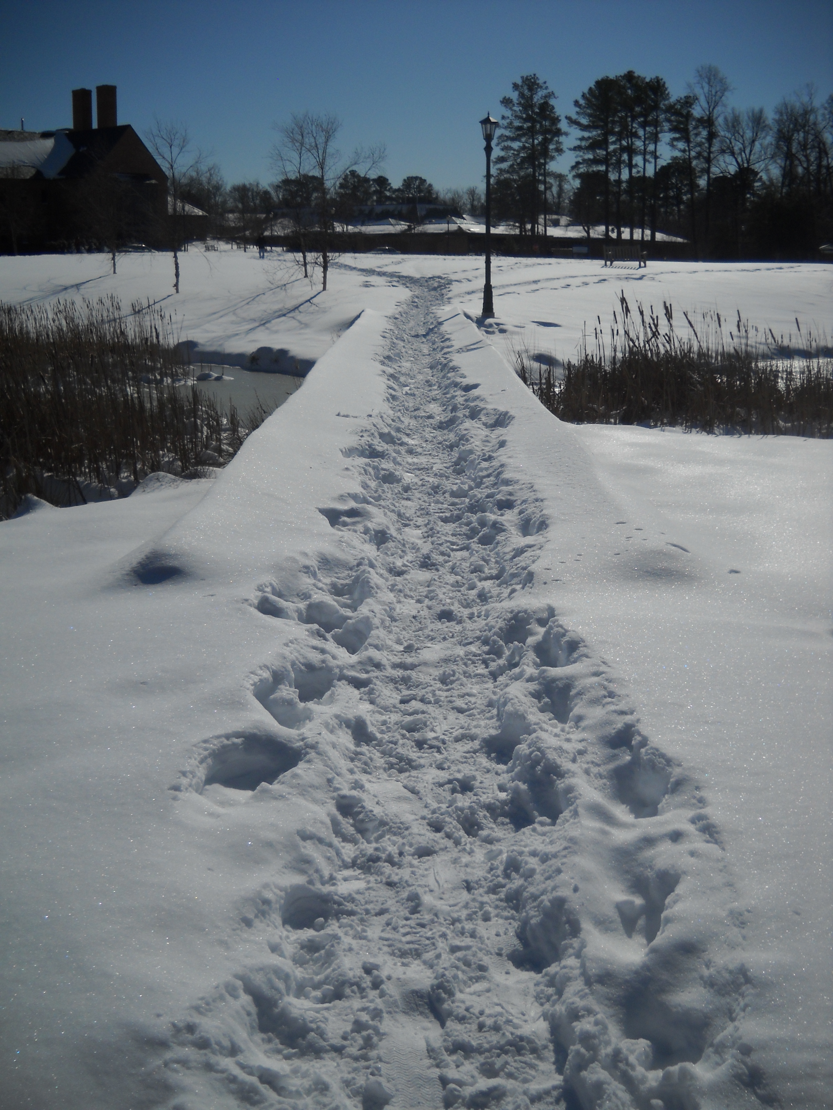 2 FebI visited my undergrad college this weekend in southern Maryland. They got about two feet of snow. I was basically snowed in on Saturday, so I went around campus taking pictures. St. Mary’s College is super-beautiful in general, but when it snows, it’s nothing short of gorgeous. This is a small foot bridge over a pond connecting the townhouses to Admissions Field. This picture made me think of balance because of the composition of the photo and the nature of the bridge.